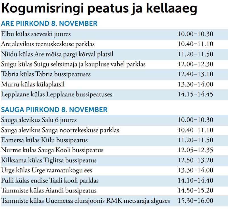 Sõltuvalt jäätmete kogustest võivad peatuste kellaajad varieeruda. Palume arvestada täiendava ajavaruga.