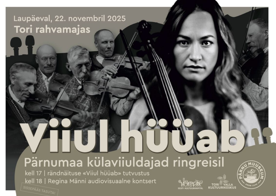 Tori Rahvamaja, Pärnu Muuseum, viiulimängija Regina Mänd ning režissöör Marta Pulk kutsuvad 22. novembri õhtut veetma Tori Rahvamajja, et nii näituse kui audiovisuaalse kontserdi kaudu jutustada pärnumaa rikkalikust viiulipärandist ja külapillimängijate eluolust ning värvikatest seiklustest eile ja täna.