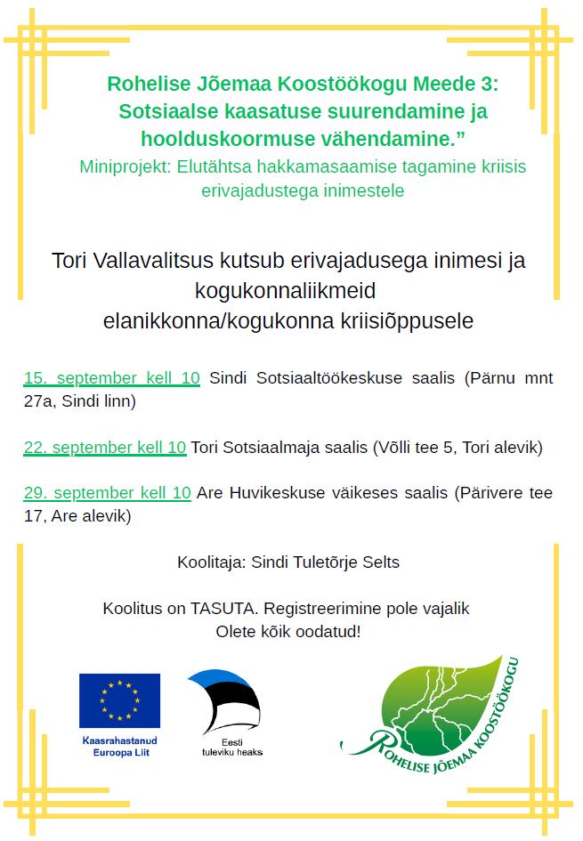 Erivajadusega inimesed on oodatud tasuta kriisiõppusele